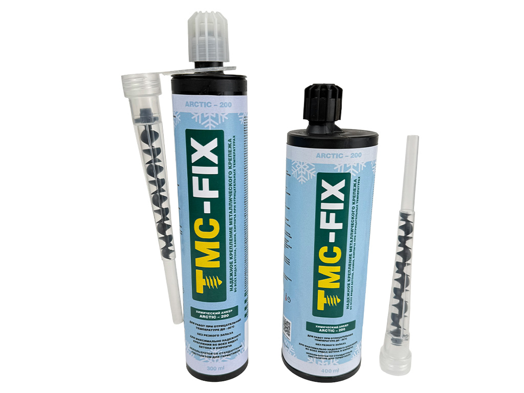 Подходит для использования при температуре до –20 °C Надёжная фиксация в сухом и влажном бетоне, кирпиче и пустотелых основаниях Применим в условиях высокой влажности и агрессивных сред Меняет цвет при отверждении (для визуального контроля) Без резкого запаха, безопасен для внутренних работ Высокие показатели удерживающей способности Заполняет пустоты без образования трещин Используется со стандартным пистолетом для герметиков Удобная фасовка — 300 мл и 400 мл Не требует специальной подготовки поверхности Описание товара TMC ARCTIC–200 — двухкомпонентный синтетический состав на основе модифицированного эпоксисиликатного винилэстера, специально разработанный для выполнения анкерных креплений в условиях отрицательных температур (до –20 °C). Благодаря стойкости к агрессивным средам и отсутствию резкого запаха, ARCTIC–200 идеально подходит для наружного и внутреннего монтажа при низких температурах, в том числе в условиях повышенной влажности. Состав обладает высокой прочностью и надежно фиксирует анкеры в бетоне (включая влажный бетон), кирпиче и пустотелых основаниях. Совместим со стандартными пистолетами для герметиков. Состав меняет цвет при полимеризации (с серого на тёмный), что облегчает визуальный контроль качества. Совместим со стандартным строительным пистолетом для герметиков. Выпускается в объёмах 300 мл и 400 мл. Артикул Наименование Объём баллона, мл Уп.мин 300330 Химический анкер ТМС ARCTIC 200 (зимний), 300 мл 300 1 300340 Химический анкер ТМС ARCTIC 200 (зимний), 400 мл 400