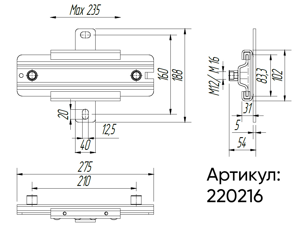 ТМС С2 Скользящая опора двойная M12/16