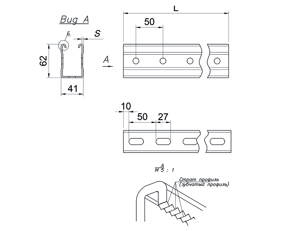 перфорация с тыльной стороны по всей длине