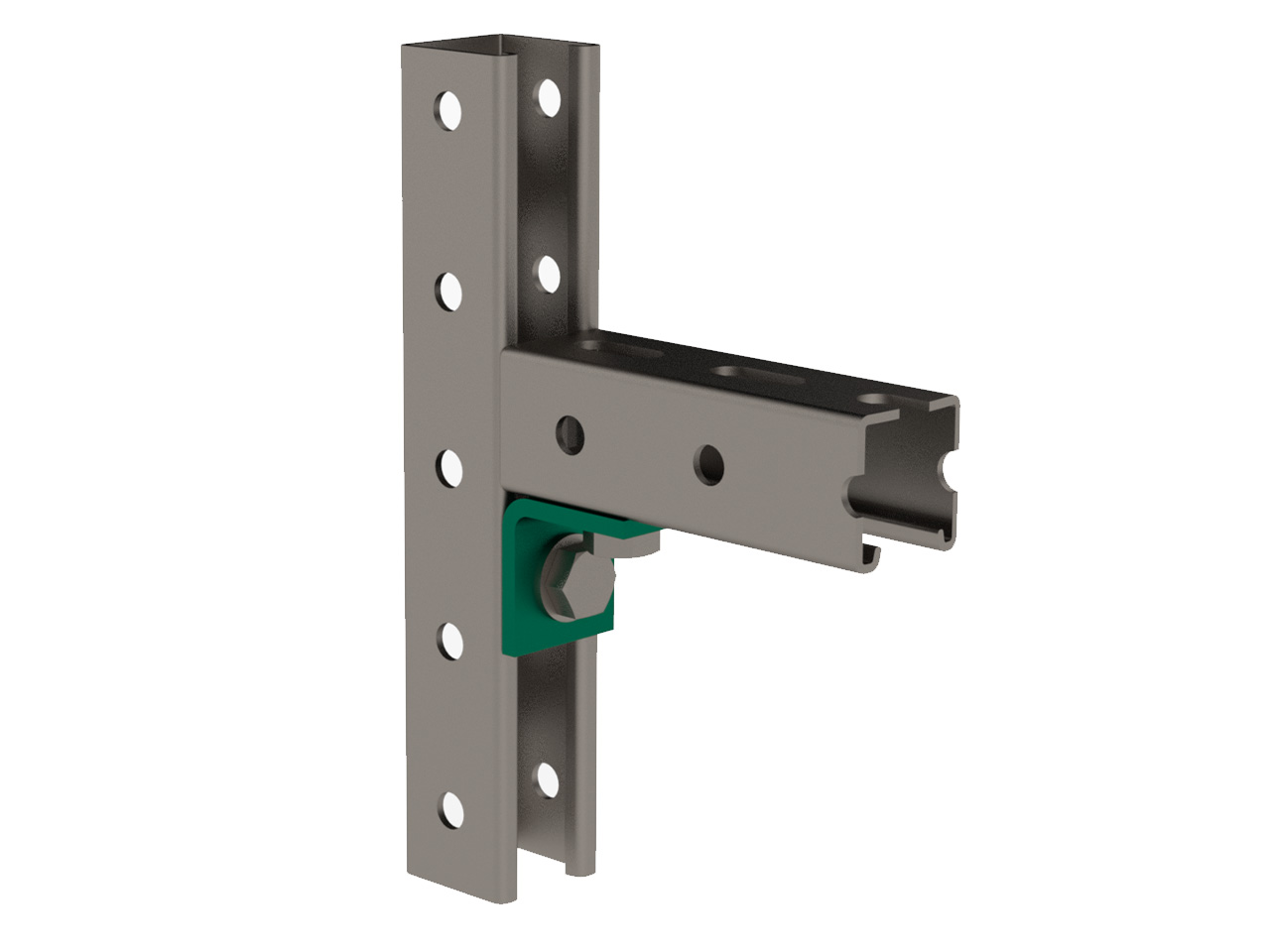Применяется для углового соединения STRUT-профилей под углом 90° Используется в лёгких и средненагруженных конструкциях Универсален: подходит для соединения профилей 41×21, 41×41, 41×62 Конструкция с двумя монтажными отверстиями позволяет производить быстрый монтаж Материал: сталь марки Ст3 по ГОСТ 1050–88 Диаметр монтажных отверстий — 13 мм (под болт М10 / М12) Покрытие: термодиффузионное цинкование (ТДЦ) по ГОСТ Р 9.316–2006 Возможен вариант исполнения с гальваническим цинкованием (оцинк.)