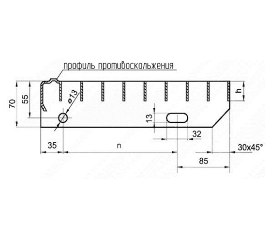 ТМС Ступень прессованная 1000х270 (гор.цинк) 33×33 35×3
